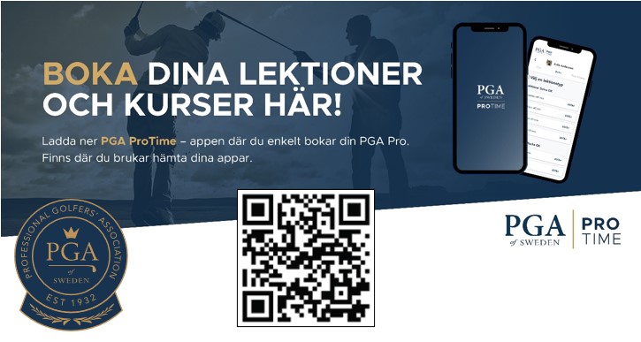 Anmälan till kurser samt bokning av lektioner och custom fitting görs via PGA ProTime appen som du laddar ner gratis genom att scanna QR-koden ovan.